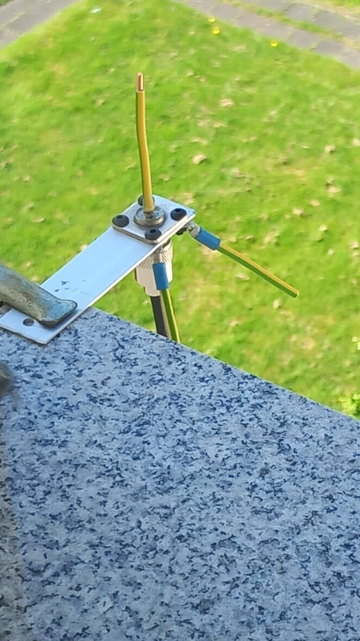 Grundplane 6.5 cm Strahler und Radiale lang und am Fensterbrett außen angebracht Richtung Norden.