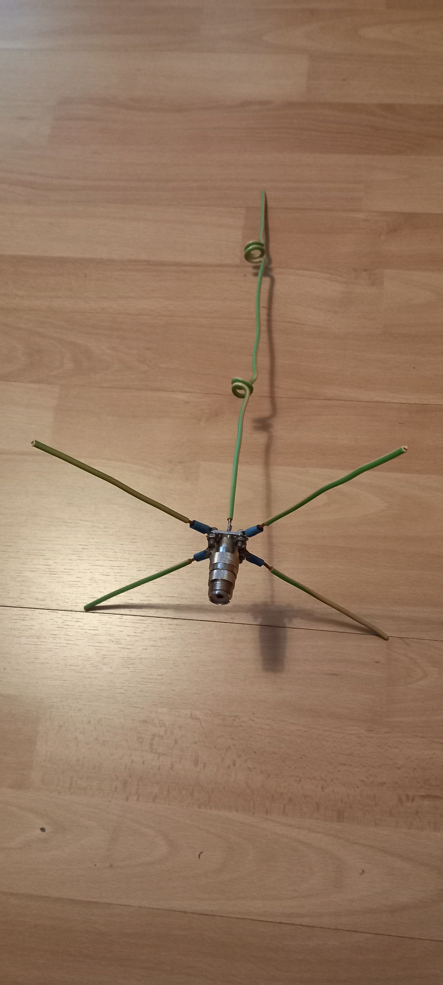 Als erstes wäre die gute GP Antenne, ein Strahler und vier Radial.