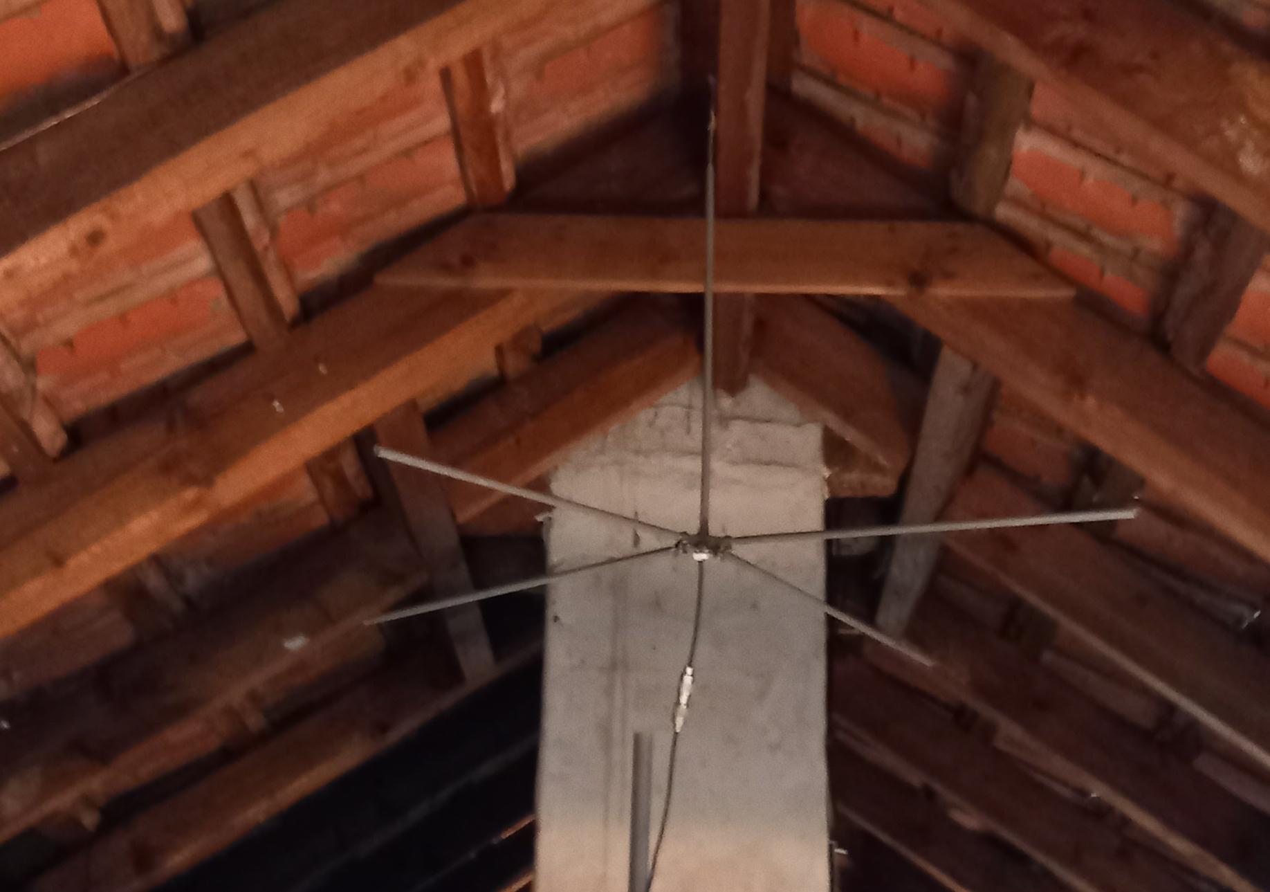 Jetzt ausrichten der Antenne, ich habe darauf geachtet das sie gerade ist. In vielen Beschreibungen heißt es 45 Grad Winkel nach unten mit den Radialen. Nein meine nicht.