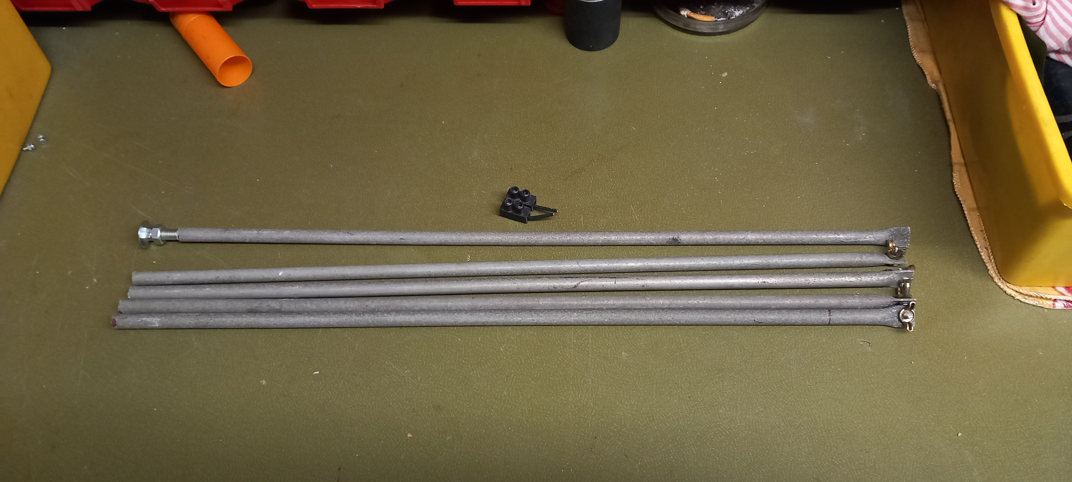 5 Alu Stangen innen hol, von einer alten UHF Antenne die mal auf dem Dach war.